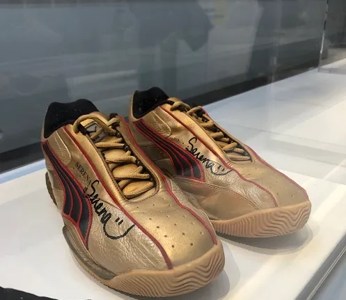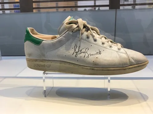 Chaque paire exposée raconte une histoire. Il y a à la fois des prêts de musées, des prêts et des dons de marques. L’exposition met en lumières des modèles iconiques, mais aussi des paires beaucoup plus rares et inédites, comme des Stan Smith dédicacées par son créateur ou encore une paire de sneakers signée par la tenniswomen Serena Williams.