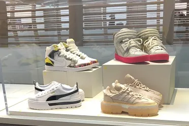 La galerie propose un parcours qui revient sur les 4 moments clés de l’histoire des sneakers : ses débuts liés à l’industrialisation du caoutchouc, l’émergence de la culture sneakers, l’explosion du marché et enfin son omniprésence dans le monde de la mode.