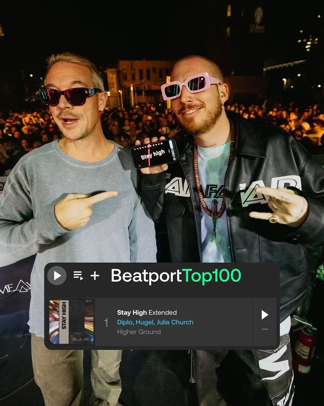 Commençons par l'actu musicale, la plus réjouissante et elle est double en plus. D'abord, Diplo se retrouve numéro 1 du Top 100 Beatport avec Stay High en collaboration avec le DJ français Hugel et la chanteuse Julia Church pour réinterpréter le fameux tube de Tove Lo Habits Stay High qui fête ses dix ans. Diplo signe ici un nouveau hit numéro 1 Beatport alors qu'il vient tout juste de sortir son dernier track baptisé 42 avec Maren Morris, cette chanteuse américaine que l'on avait entendue sur l'un des tubes de l'année 2018 The Middle de Zedd. La voici aux côtés de Diplo pour ce très bon single deep house 42.