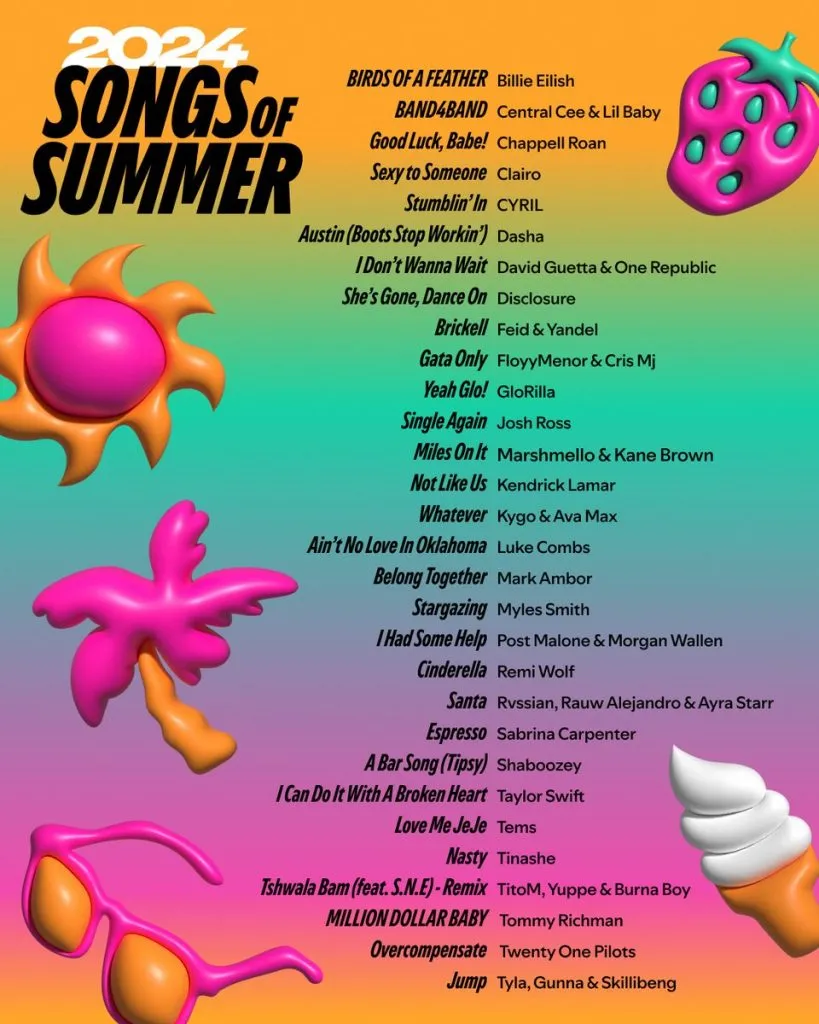 Pourtant, Spotify tente le coup et vient de sortir une playlist sur ses prédictions 2024 "Songs Of Summer". 30 titres d’une grande variété – hip hop, latino, pop comme électro – et qui pourraient s’imposer. Parmi eux, quelques grands noms de la planète électro tels Kygo avec ‘Whatever’ featuring Ava Max, David Guetta et son dantesque ‘I Don’t Wanna Wait’ ou encore – et pour les amoureux de house music – le morceau comeback des anglais de Disclosure, ‘She’s Gone, Dance On’.