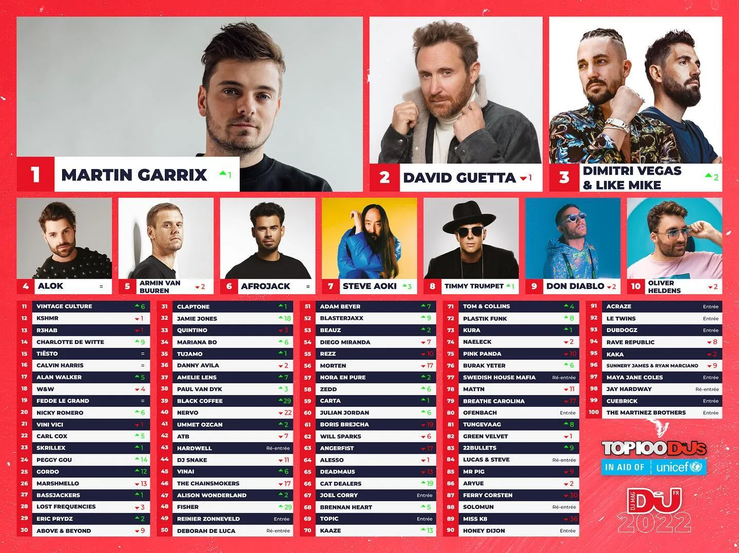 Hier, on a découvert les résultats du top 100 DJ Mag, la liste qui classe les meilleurs DJs du monde. C’est donc Martin Garrix qui s’est classé numéro 1, juste devant la superstar française David Guetta et le duo Dimitri Vegas & Like Mike.
