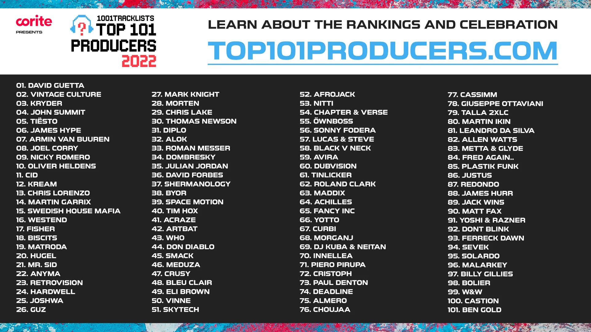 C'est un classement moins connu que le Top 100 DJ Mag, et pourtant il a son importance et est très intéressant. La raison est simple : le top 101 producers vient récompenser les 101 producteurs les plus joués par les autres DJs.